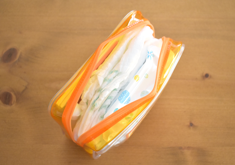 おむつ3枚程度ならポーチにまとめられるので、短時間~中時間のお出かけに便利。