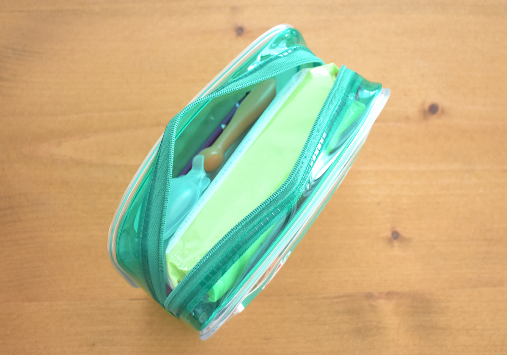 ハンカチやガーゼも一緒に入るので、このポーチさえあれば一件落着。