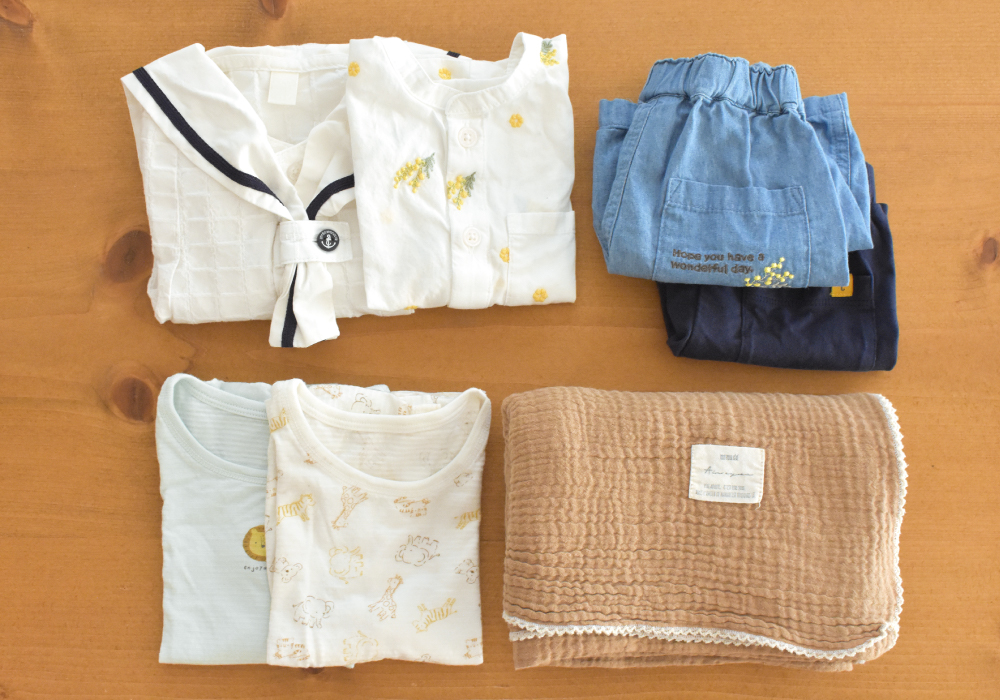 うっかり漏れるおむつのハプニングにも、着替えとおむつが多いと安心。