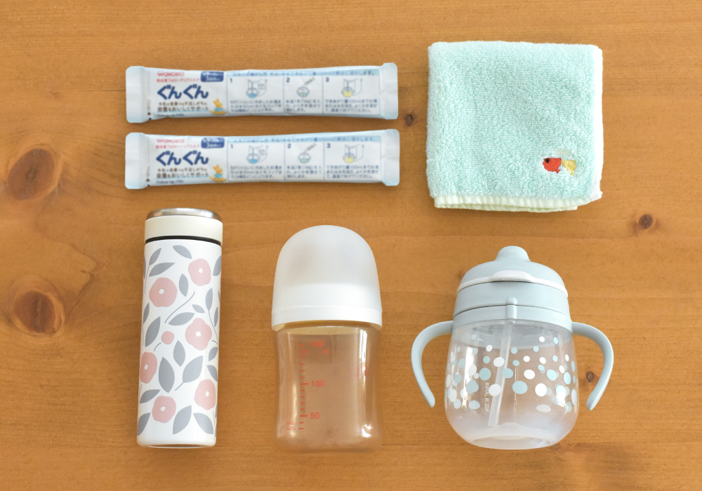 ・哺乳びん、粉ミルク、お湯入り水筒など(ミルクの場合)