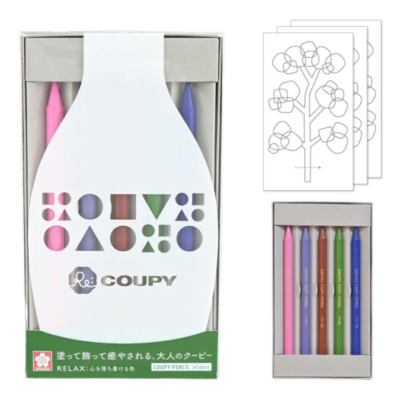 ・クーピー5本と花の塗り絵カード(3枚入り)のセット