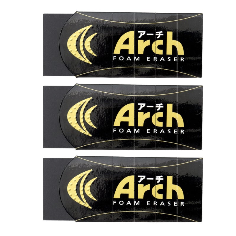 驚くほど消しやすく、折れにくい進化系消しゴム アーチ消しゴム Mサイズ ブラック 3個入り