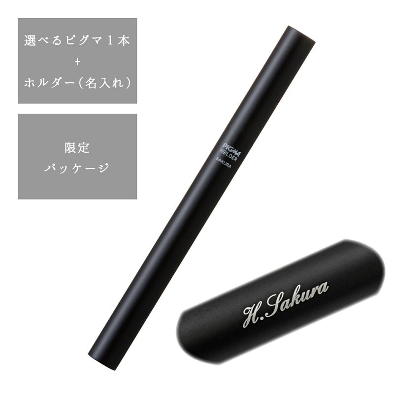 用途に合わせて豊富な線幅が選べる「ピグマ(水性顔料サインペン)」と、専用の金属製ペンジャケット「ピグマホルダー」のセット。 ご愛用の「ピグマ」にジャケットを装着すれば、スタイリッシュなデザインに、使い心地も上質に。「ピグマホルダー」にお名前やイニシャル、お使いの線幅を刻印することで、特別感を演出できます。また、シンプルで高級感のある「限定パッケージ」、ラッピング包装もできるので、贈る相手に合わせてネイビー・グレーから選べます。世界でたった一つの「ピグマホルダー」を添えて、自分へのご褒美や贈り物に。