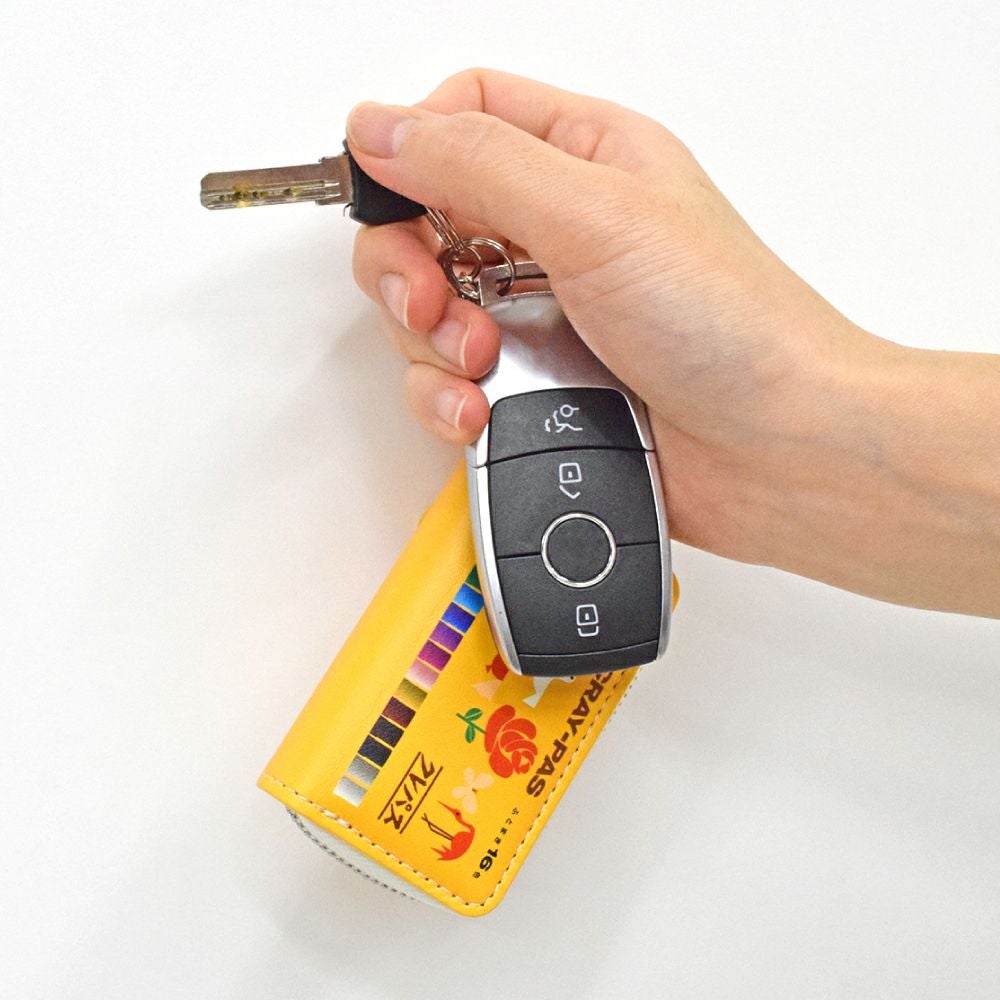 他の画像を見る コラボ商品 便利なカラビナ付き!ファスナータイプのキーケース株式会社藤家と株式会社サクラクレパスとのコラボ商品です スマートキーケース クレヨン柄 通常販売価格 ¥ 2,420 税込 カートに入れる