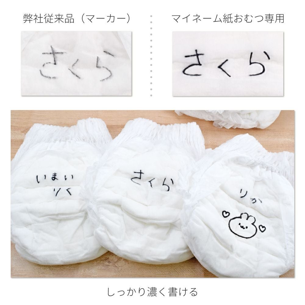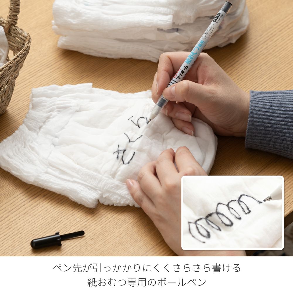 サラサラ快適に!名前ペン「マイネーム」に紙おむつ専用が登場!ペン先が引っ掛かりにくく、紙おむつにサラサラと書けるボールペンタイプ。毎日忙しいパパやママをサポートします!インク流出量を工夫した専用ペンなので、インクがかすれず、名前がくっきり濃く目立ちます。またインクの残量が見え、使い終わり時期が分かるので、急なインク切れを防ぎます。