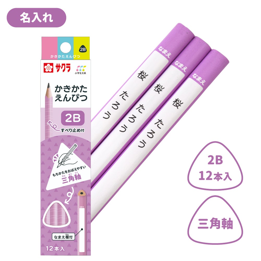 かきかた鉛筆 三角軸滑り止め付2B ラベンダー 名入れ