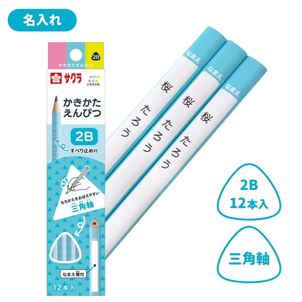 かきかた鉛筆 三角軸滑り止め付2B ブルー 名入れ
