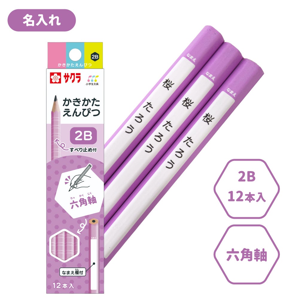 かきかた鉛筆 六角軸滑り止め付2B ラベンダー 名入れ