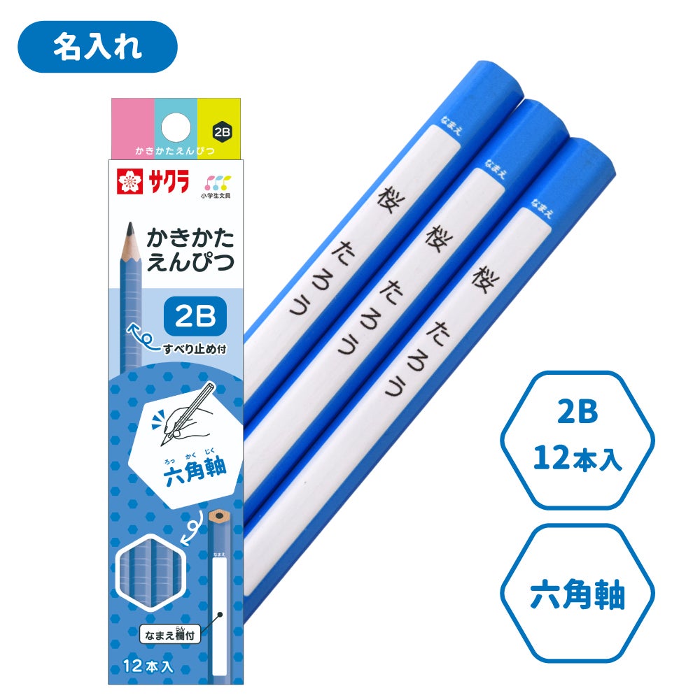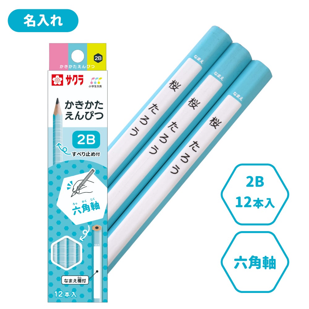 かきかた鉛筆 六角軸滑り止め付2B ブルー 名入れ