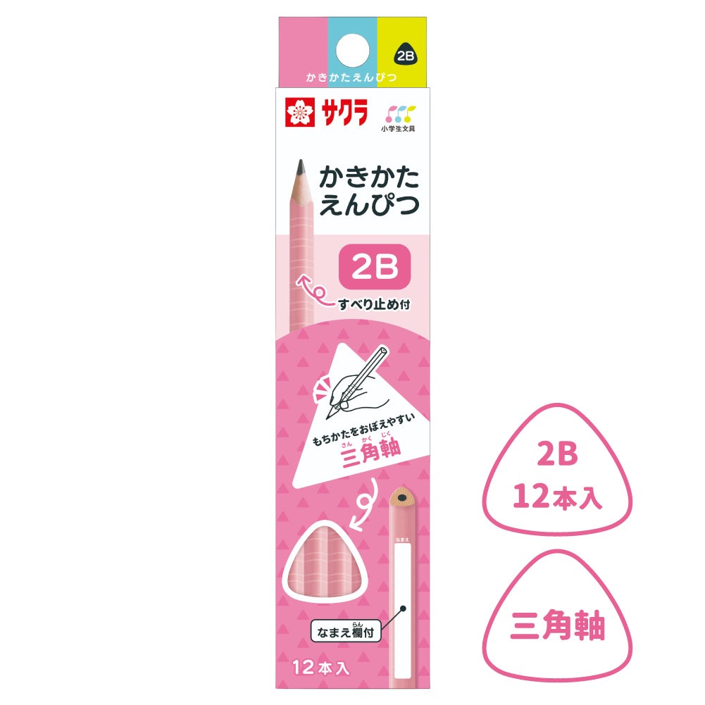 かきかた鉛筆 三角軸滑り止め付2B ピンク