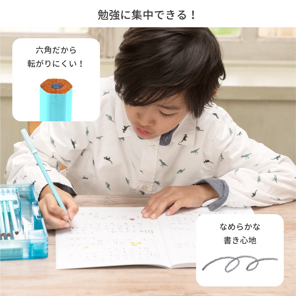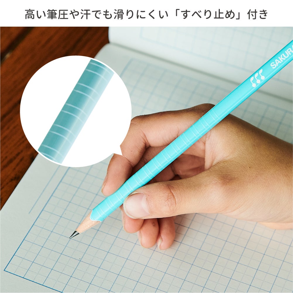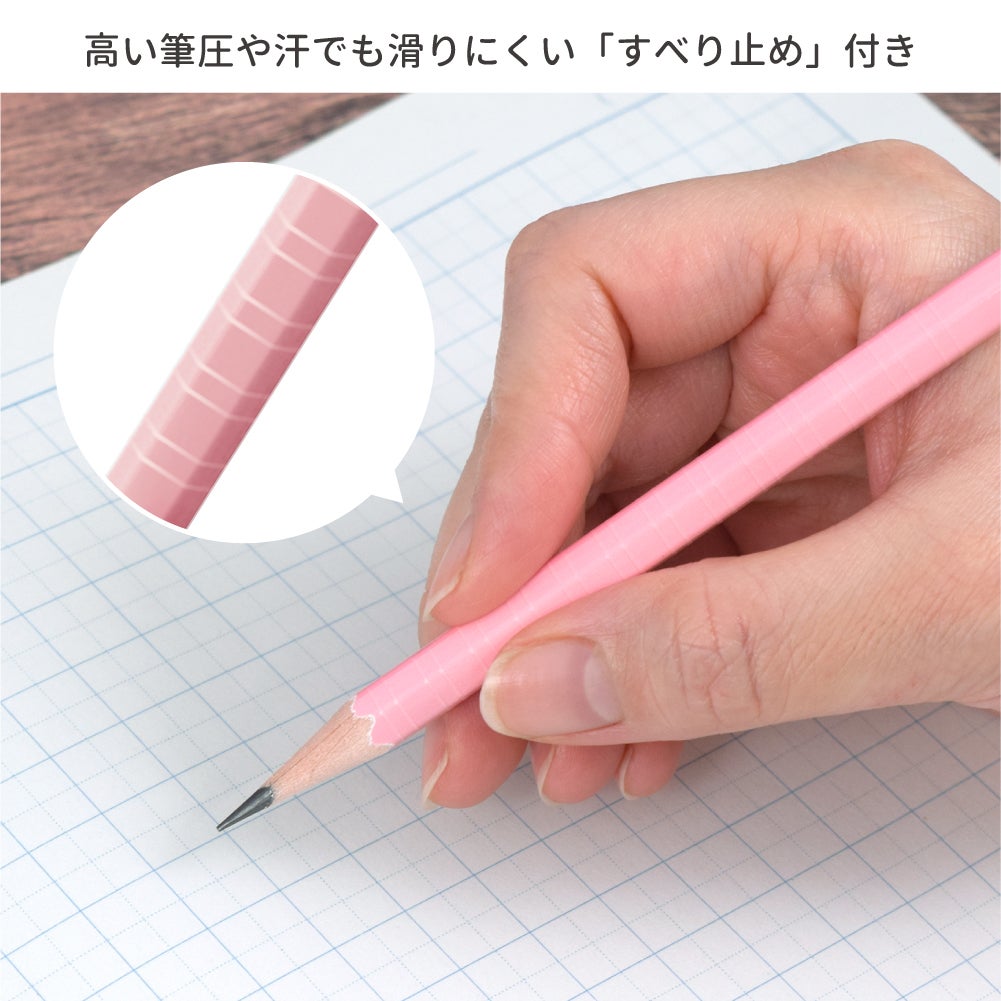 カラー展開が豊富な滑り止め付きの六角軸鉛筆!