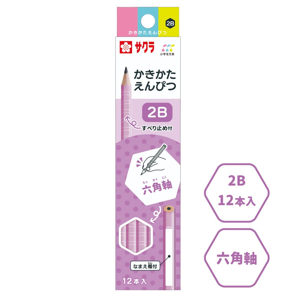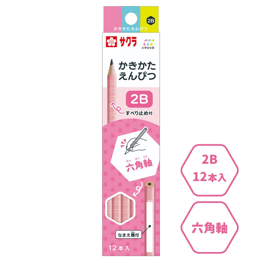 かきかた鉛筆 六角軸滑り止め付2B ピンク