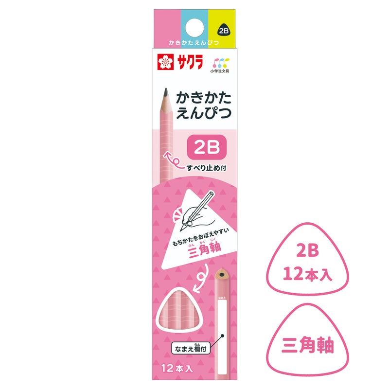 滑り止め付きの三角軸鉛筆!入学準備におすすめです! かきかた鉛筆 三角軸滑り止め付2B ピンク