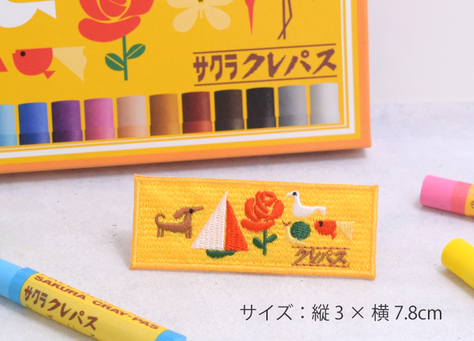 クレパス®のレトロでかわいいパッケージが、刺繍のワッペンシールになりました!