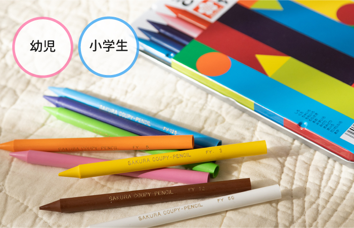 削らずに塗れる・消しゴムで消せるといった特長から、学習用にも選ばれ続けています。