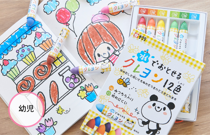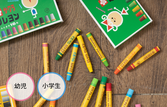 なめらかな描き心地で、発色があざやかな「クレヨン」は、幼児から小学生までお絵かきの定番。